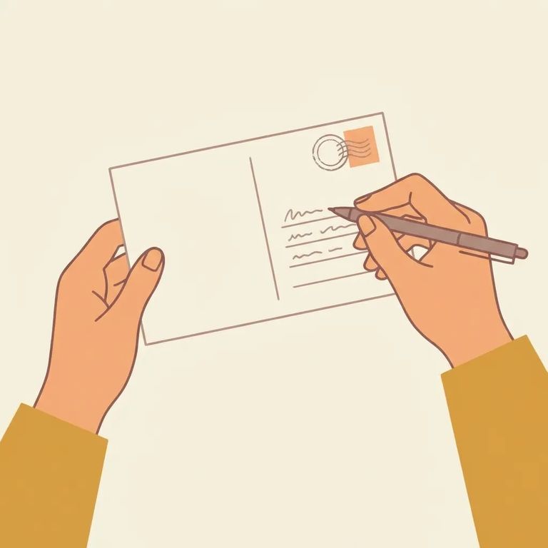Your postcard needs to meet specific material and writing requirements. It must be white, written in blue or black ink only. The postcard also has to be metered or have a preprinted stamp - regular affixed stamps won't work.